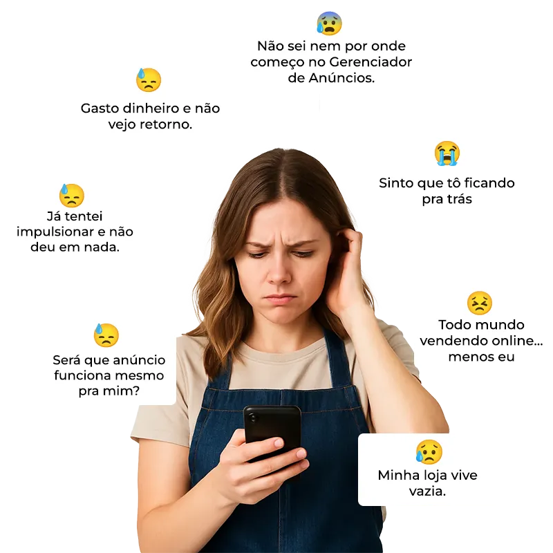 É um curso online prático que ensina pequenos empreendedores a criarem anúncios que realmente funcionam — mesmo que nunca tenham feito isso antes.